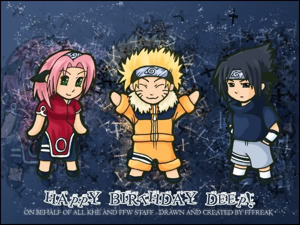 Navlon, Я наверно не в тему конечно позно но лучше позно чем никогда))) С ДНЁМ РОЖДЕНИЯ Имя-Хина Возраст- 17 Ранг-Генин Селение-Трава Стихии-вода Оружие- гуандау Миссии-С(2)